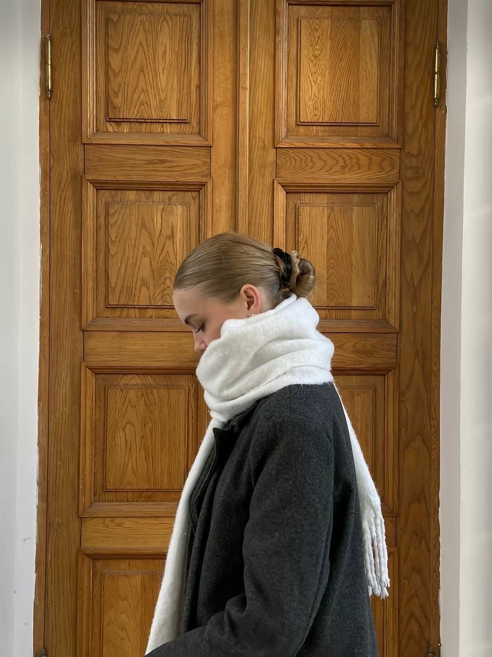 Beyaz Atkı Yumuşak Dokulu Omuz Şalı