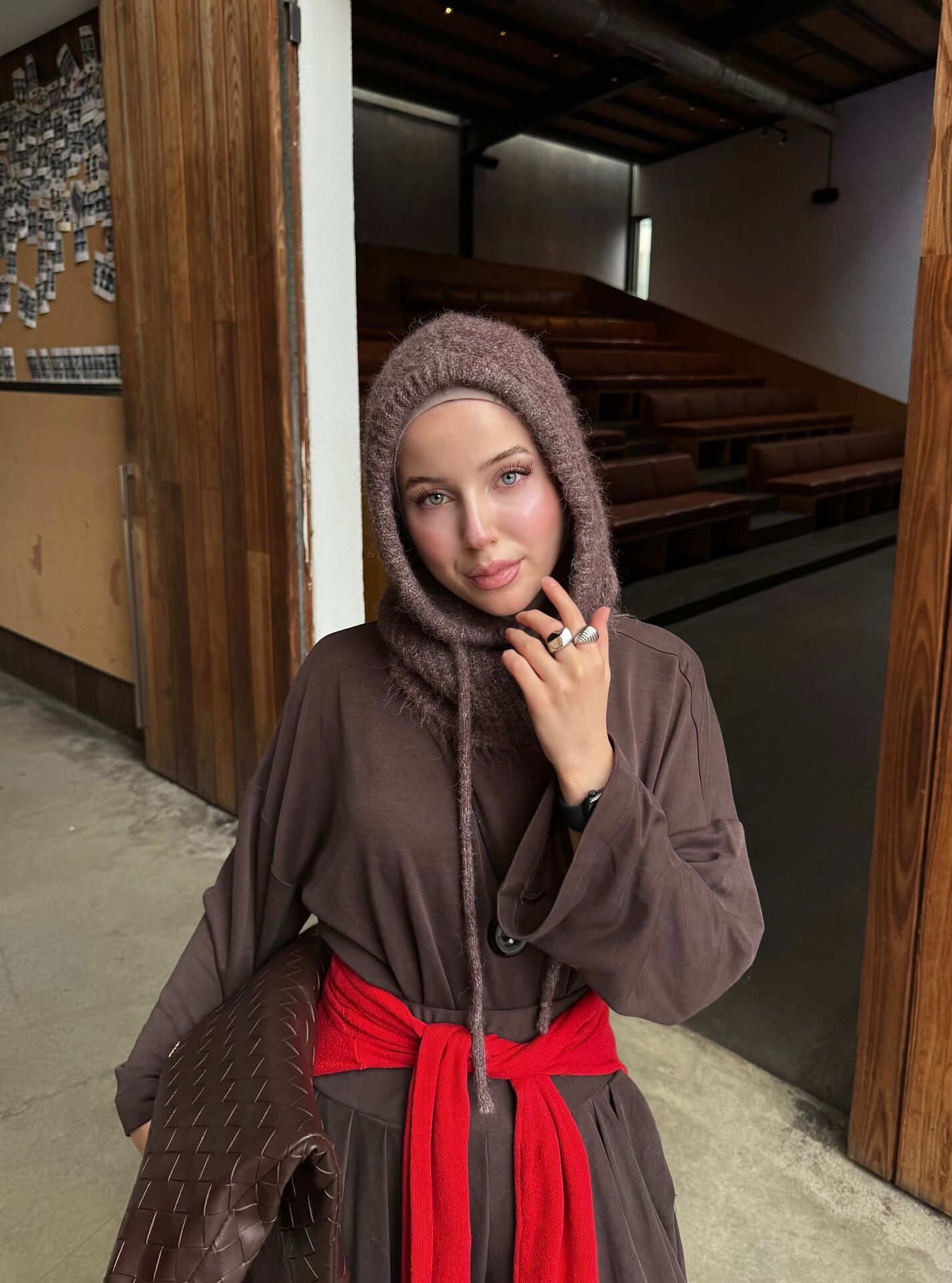 Yün karışımından üretilmiş,yumuşak dokulu örgü balaklava