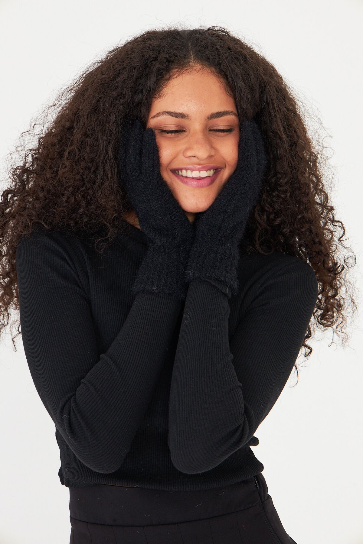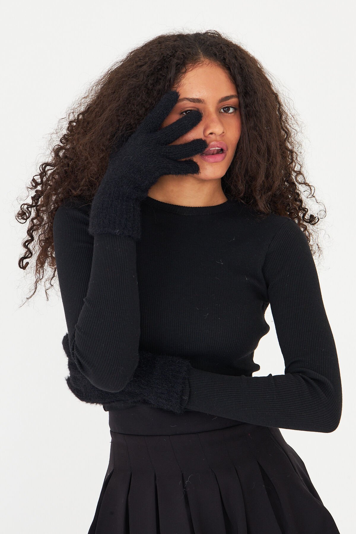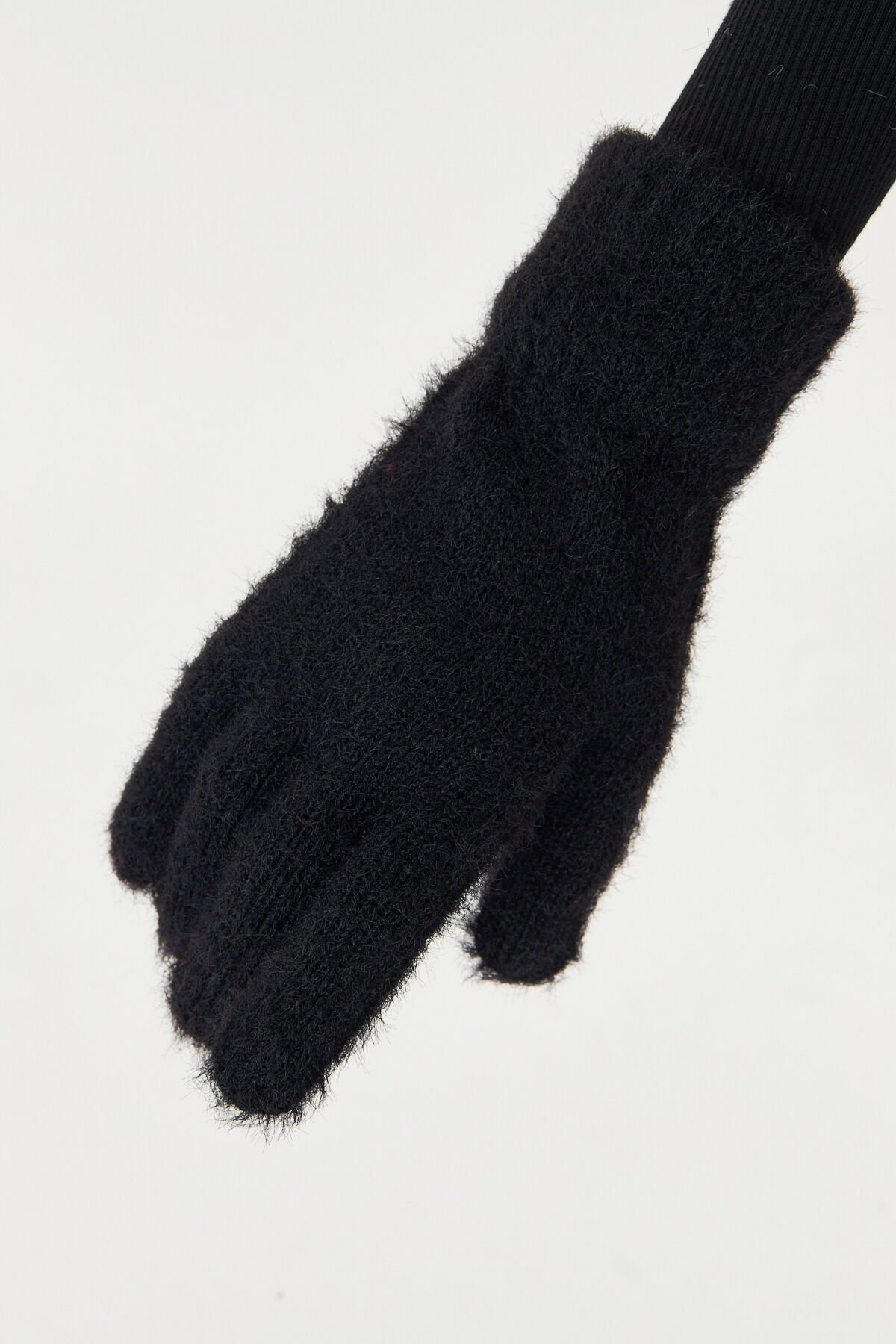 Yumuşak dokusuyla cildinize nazikçe dokunan siyah peluş eldiven, soğuk havalarda ellerinizi sıcak tutar.