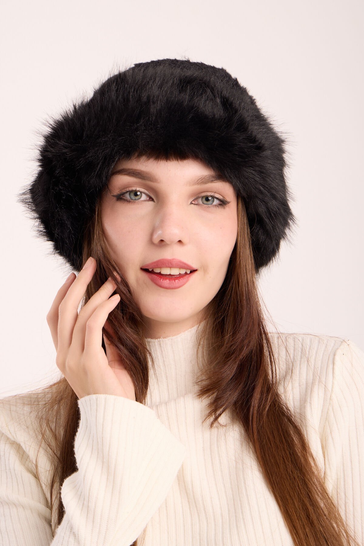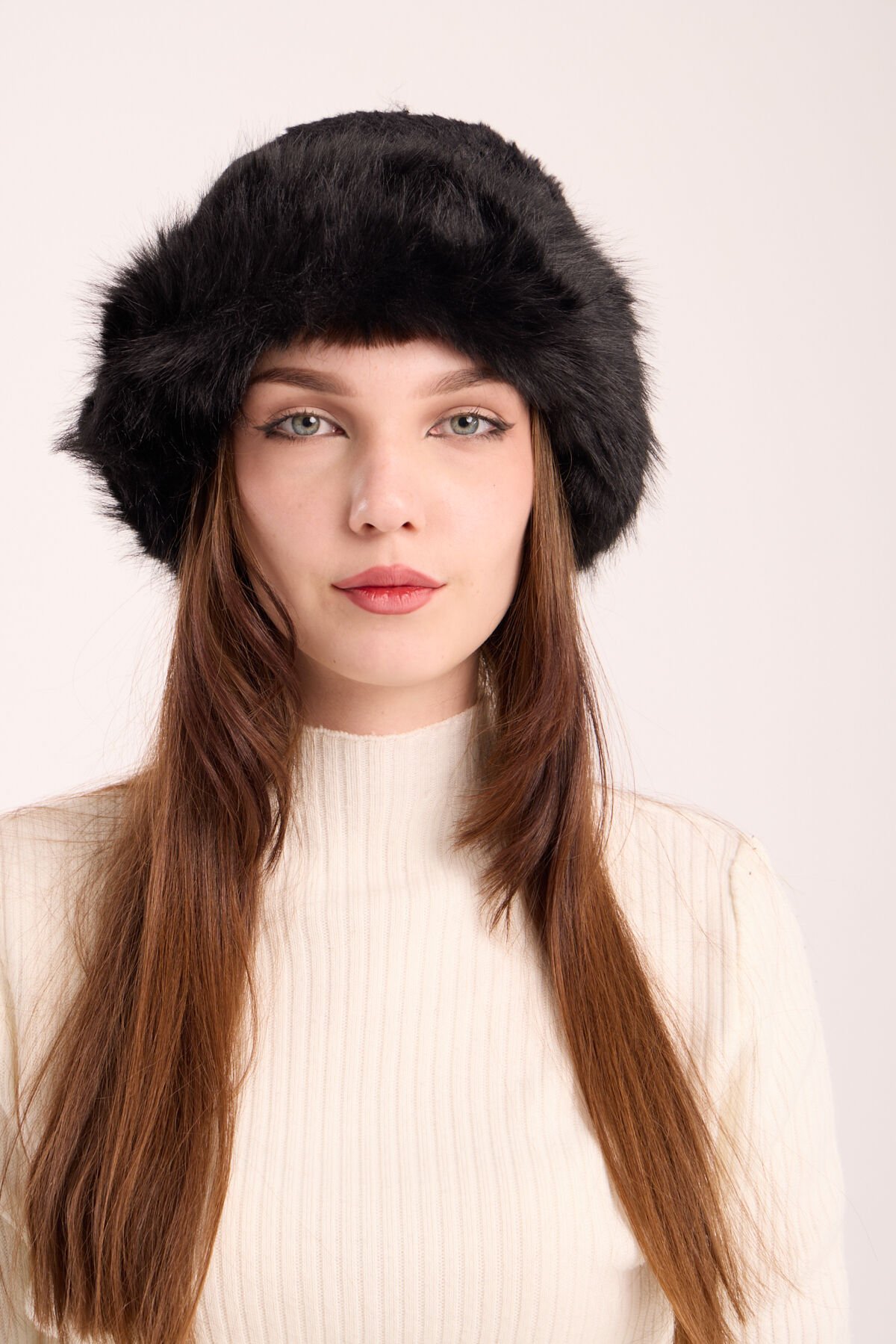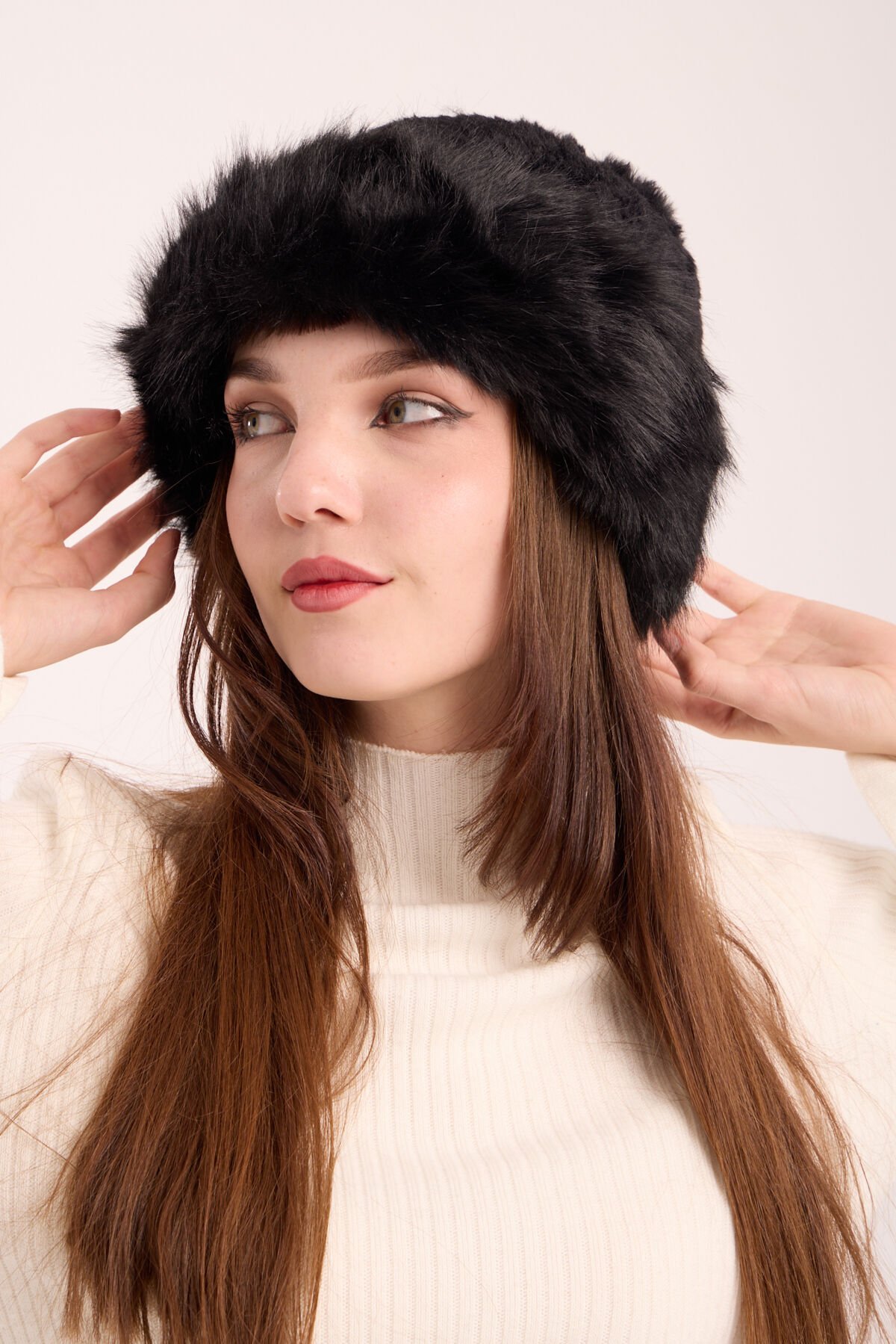 Siyah Peluş Kürk Kalpak Şapka
