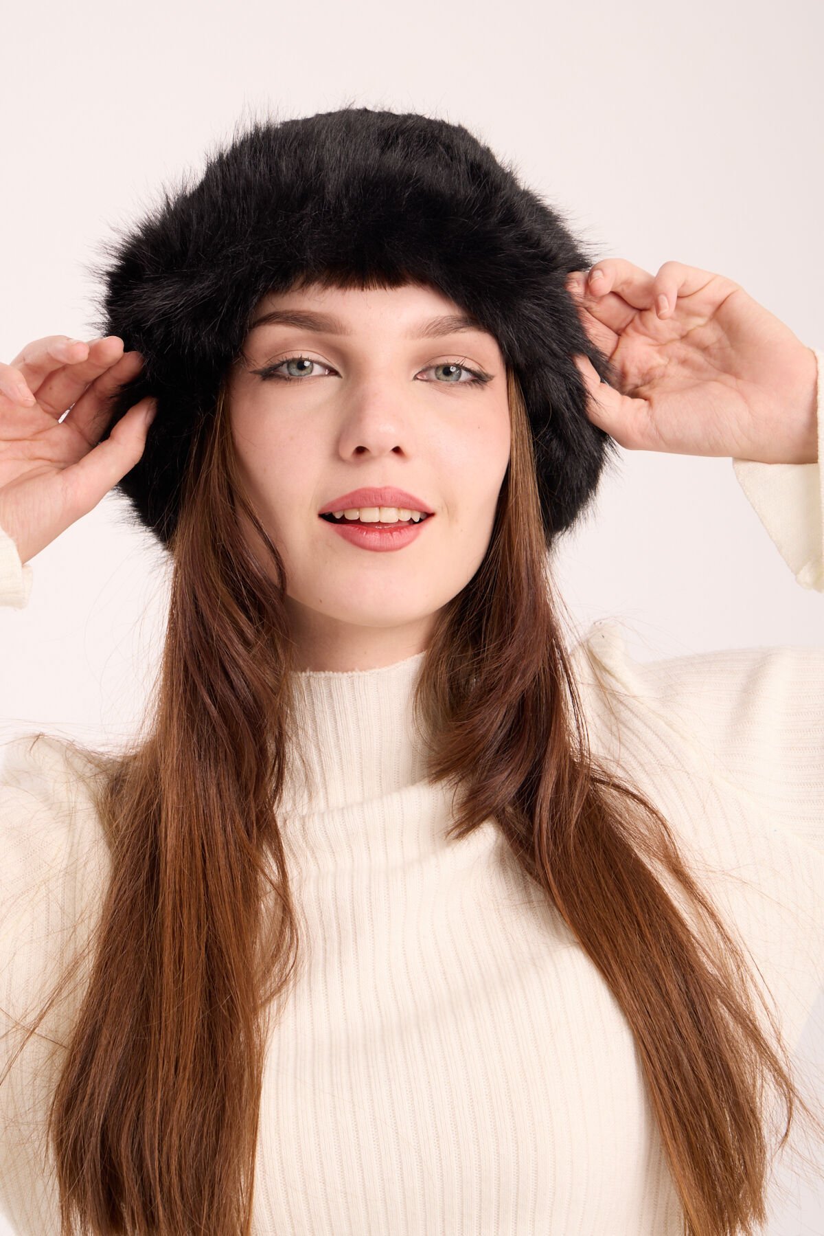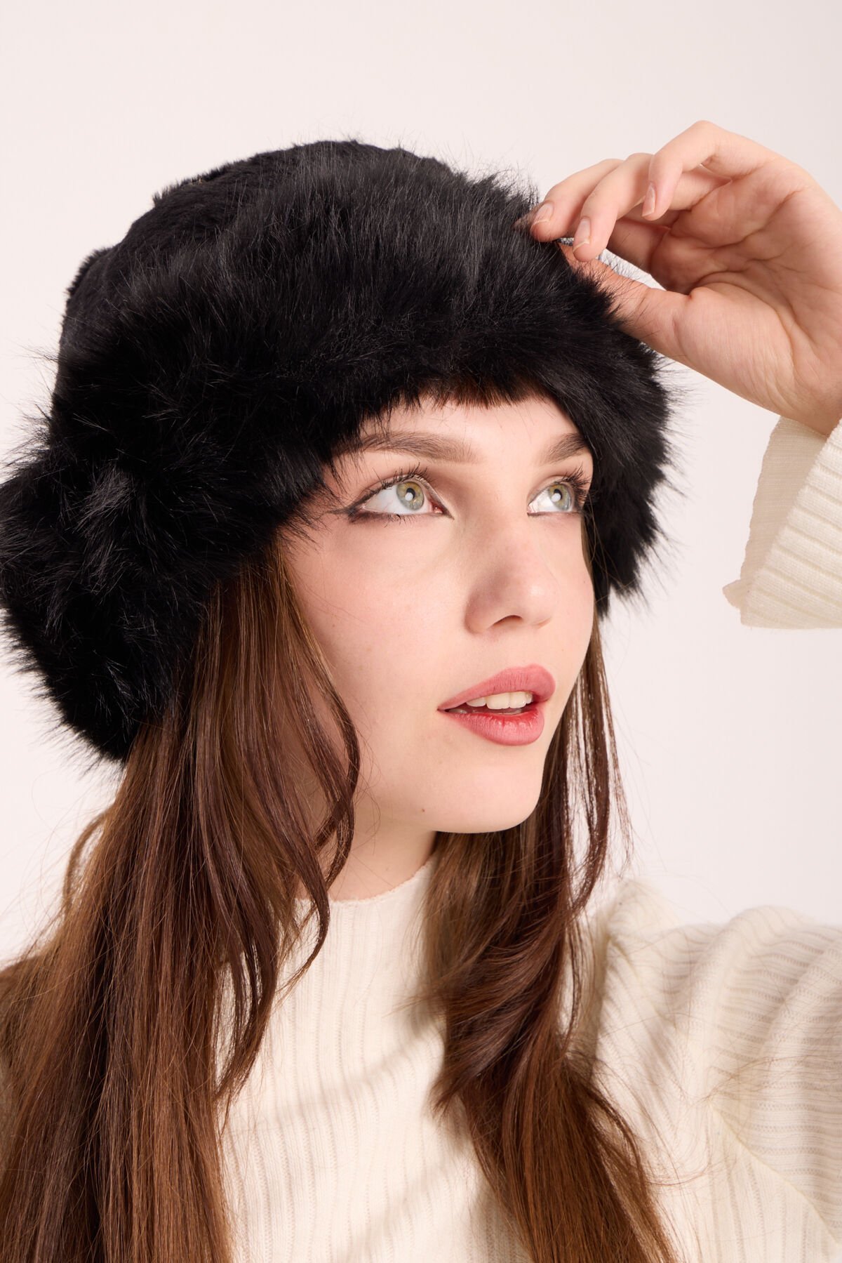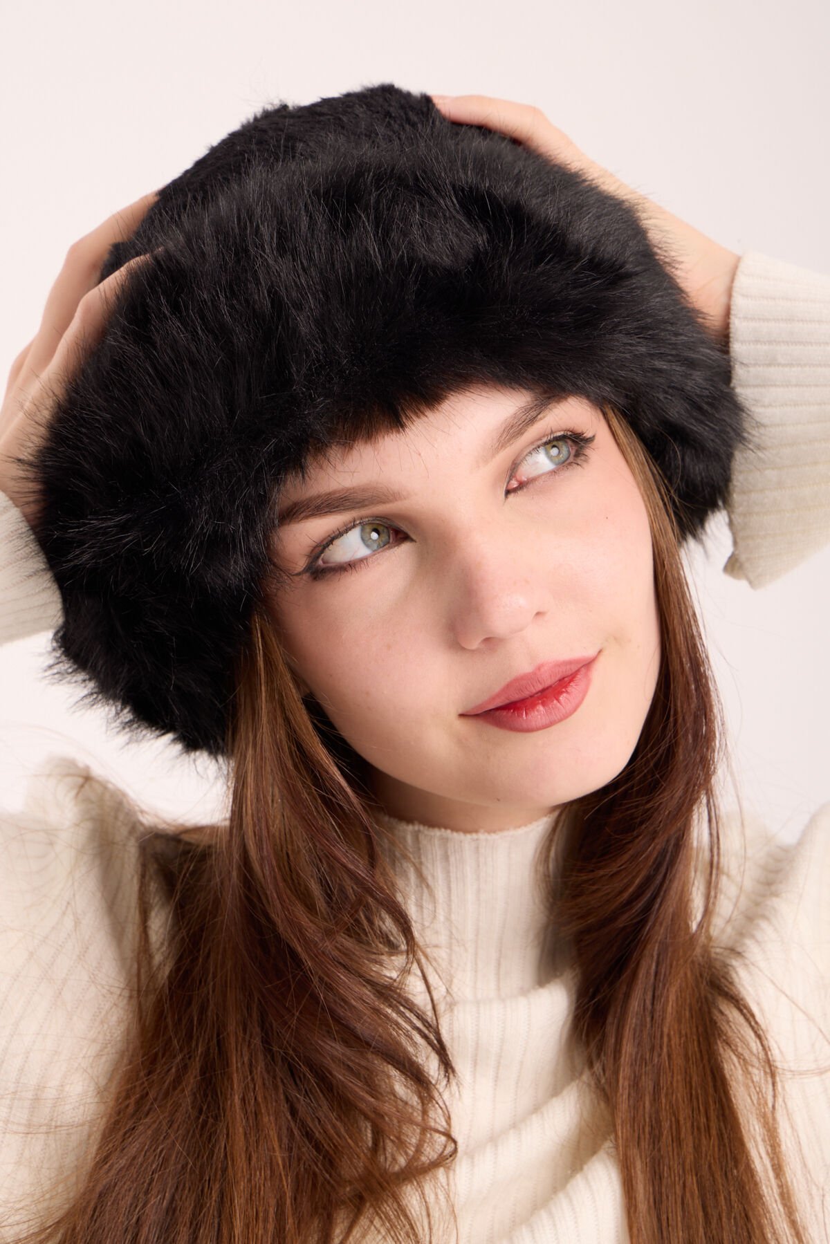 Siyah Peluş Kürk Kalpak Şapka